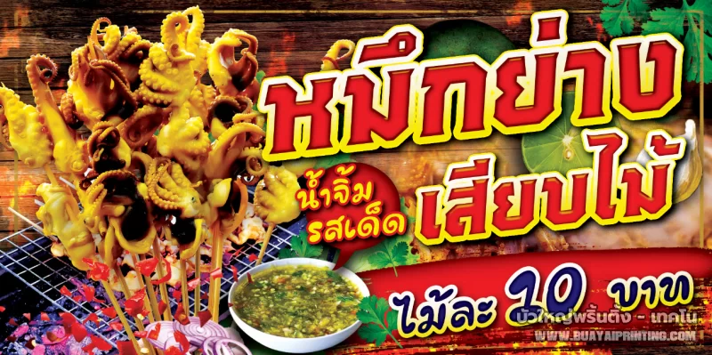 ป้ายปลาหมึกย่าง