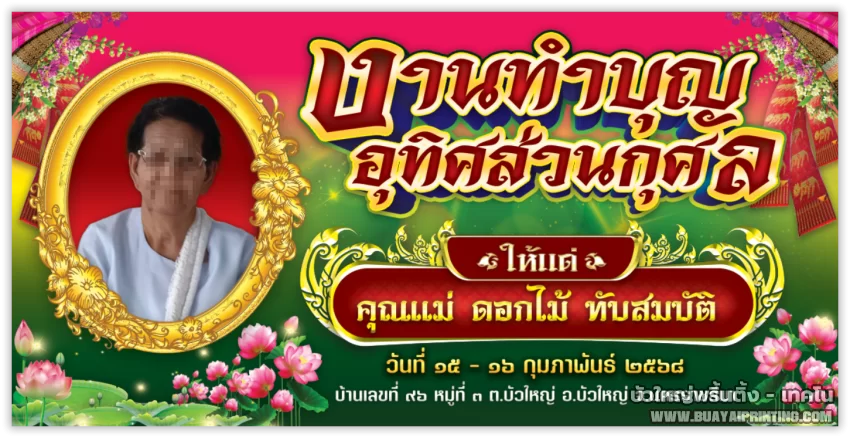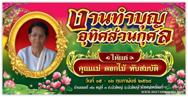 ป้ายงานขาวดำ แบบที่ 3 (อุทิศส่วนกุศล)